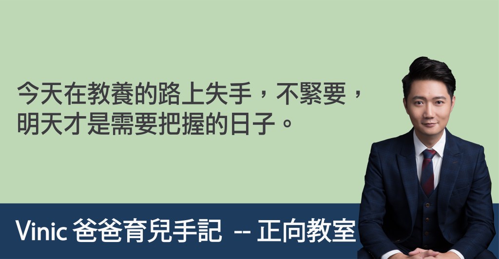 我們每天都在學習當父母,沒有人會在這個科目考上100分。可是,孩子仍無條件地愛我們。今天,縱使我都認為自己有多失敗,也不緊要,因為明天才是我們需要把握的日子。