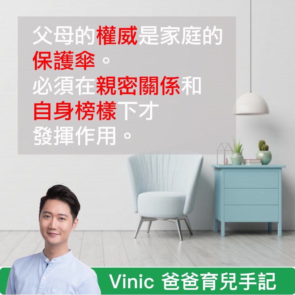 父母的確擁有權威,而權威是由關係和榜樣而來。所以,要使用權威,父母必須跟孩子擁有親密關係。自身亦要他為孩子榜樣。