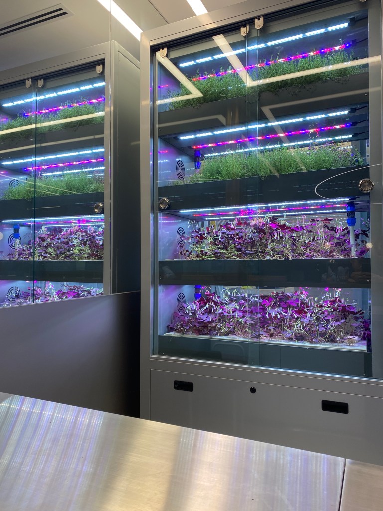 活動最後一站就係移師附近嘅 Interval x Farmacy餐廳。呢間餐廳特別嘅地方係廚房有個環保農場~由專員講解下,原來餐廳嘅香草同埋微菜苗由「全環控智能移動水耕種植機」種出嚟,提供餐廳煮食。專員採摘咗一啲香草同微菜苗俾我哋試試,嘴刁嘅我即刻食得出個分別,又Fresh又夠味,仲好環保添。
