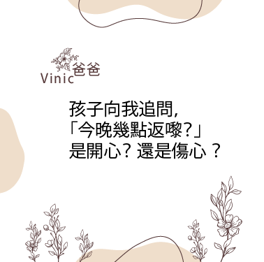 被孩子追問「今晚幾點返?」,可能因為孩子需要我們,開心吧。不過再想想,可能是這個需要不被滿足吧。